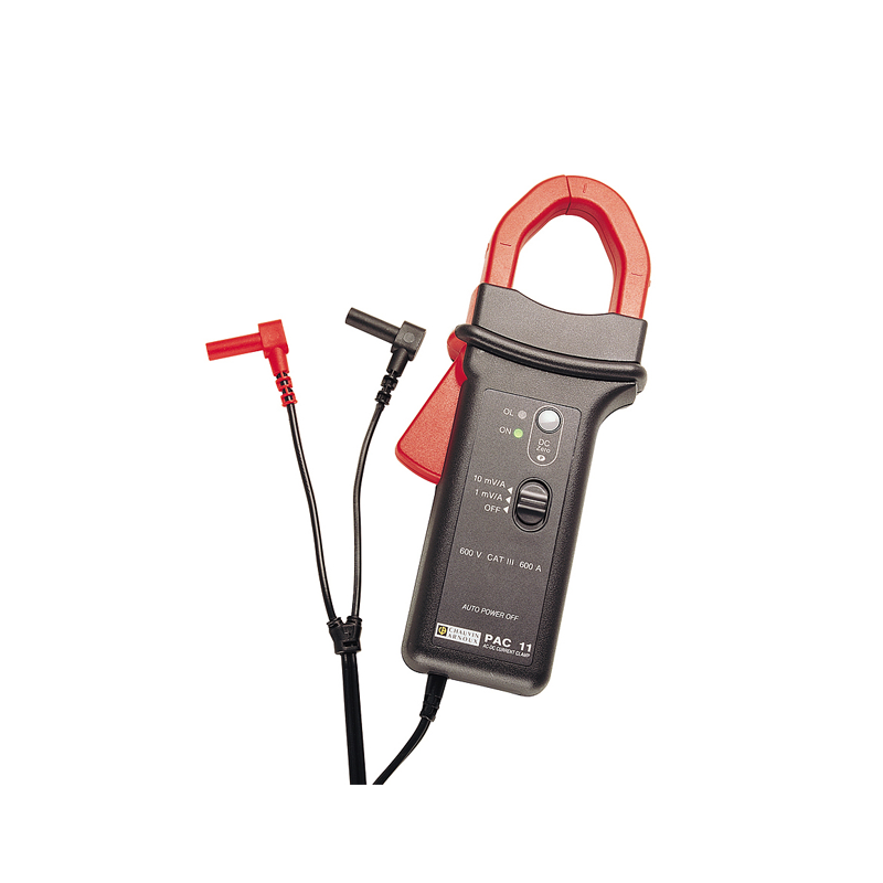PAC11是一款通用的AC/DC电流钳,400AAC和600ADC,专门设计用于万用表(DMM)、记录仪、示波器及其它带电流输入端口的仪器。PAC11提供两个量程:40AAC/60ADC;400AAC/600ADC。PAC11输出端子为:1.5m导线+4mm香蕉插头(公头)。