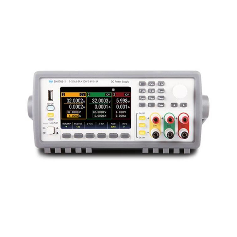 DH1766 系列是一款性能卓越的三通道输出精密型可编程直流电源。该系列电源共有四款型号,可提供200~360W 输出功率,拥有极优异的输出精度及高置信度,屏幕分辨率可达0.1mV/0.1mA(DH1766A型分辨率为10mV/1mA),屏幕采用大尺寸液晶显示屏,可显示丰富的测试测量信息,完整形象直观地显示电压电流变化趋势,便于用户分析测量。2U 高度半机架的机箱尺寸,体积小巧便携,外观美观紧凑,可容纳三路输出,具有便捷的上架特性。