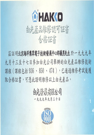 专业的维修工程师 ,获得了泰克产品,白光产品及惠美产品的维修认可证书,只有经过专业技术培训的工程师,才能对维修后产品有保障,专业的维修让您放心,称心,安心。