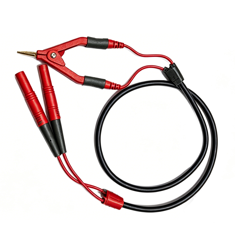HTL-504,四端4mm插头开尔文线,测试夹开口最大9.14mm,四线电阻测量,线总长0.8米。