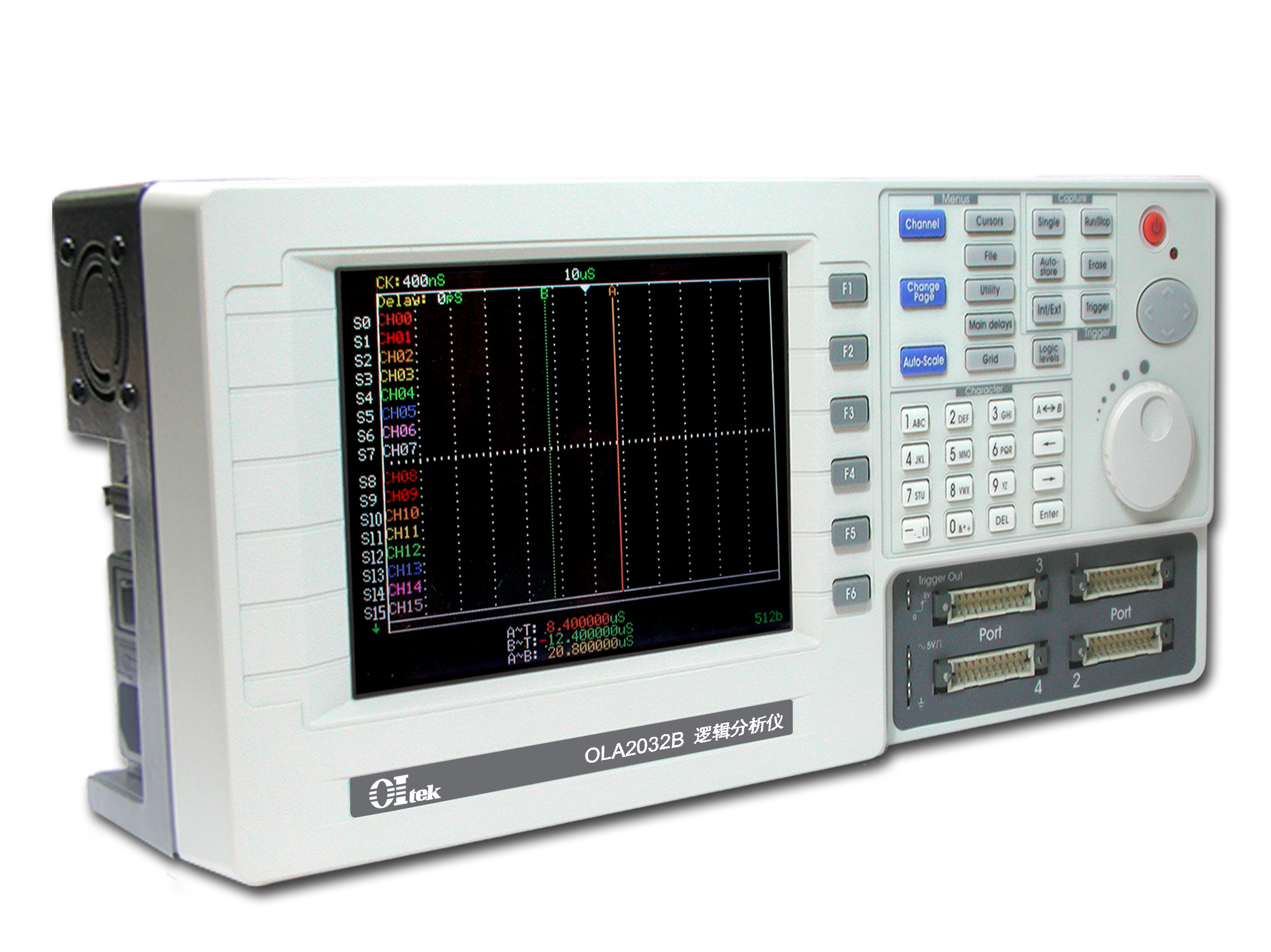 独立台式逻辑分析仪,订货号OLA2032B,含主机1台、OICON信号转换盒4盒、OIP2032信号测试线4根(含8个数据通道、地线和时钟各1个)、OISMT测试夹36支、OLA应用软件光盘1张、USB电缆1根、中文使用手册1本、中文操作面板1个和中国制式电源线1根。