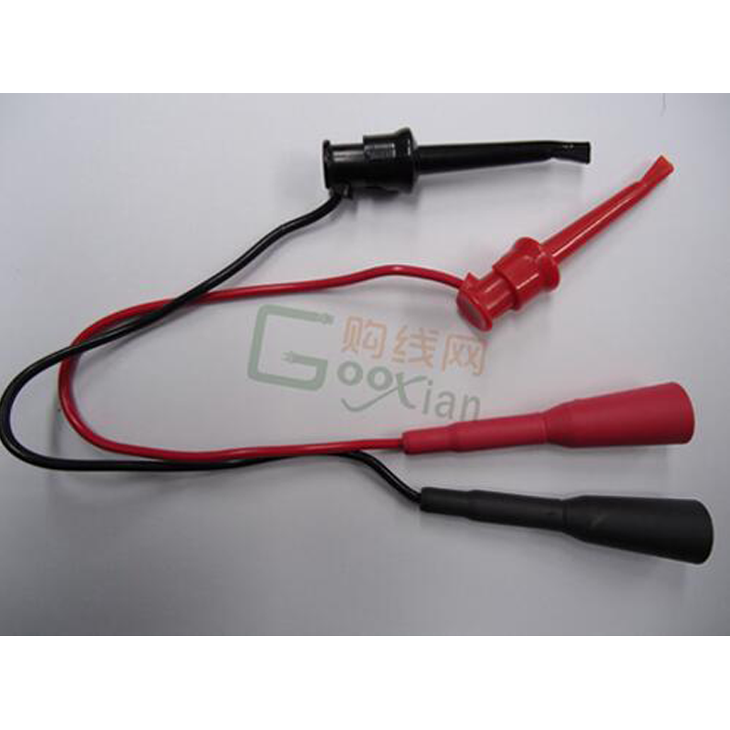 HTL-104迷你钩测试线,又名2mm表笔尖微细钩测试线,方便万用表表笔钩住导体进行测试,既安全,又能脱手操作,线长180mm,红黑成对。