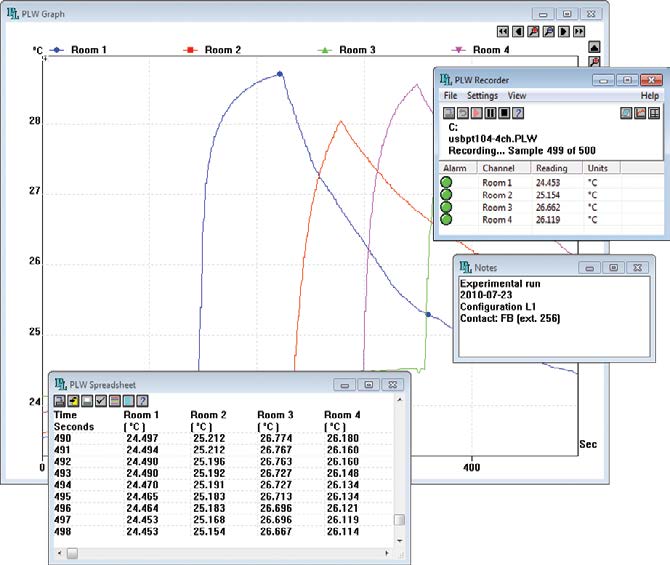 PT100数据记录仪包含PicoLog数据记录软件。PicoLog会自动探测所连接到的传感器并且以正确的单位显示读数。