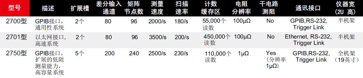2700、2701、2750型模块选型指南: