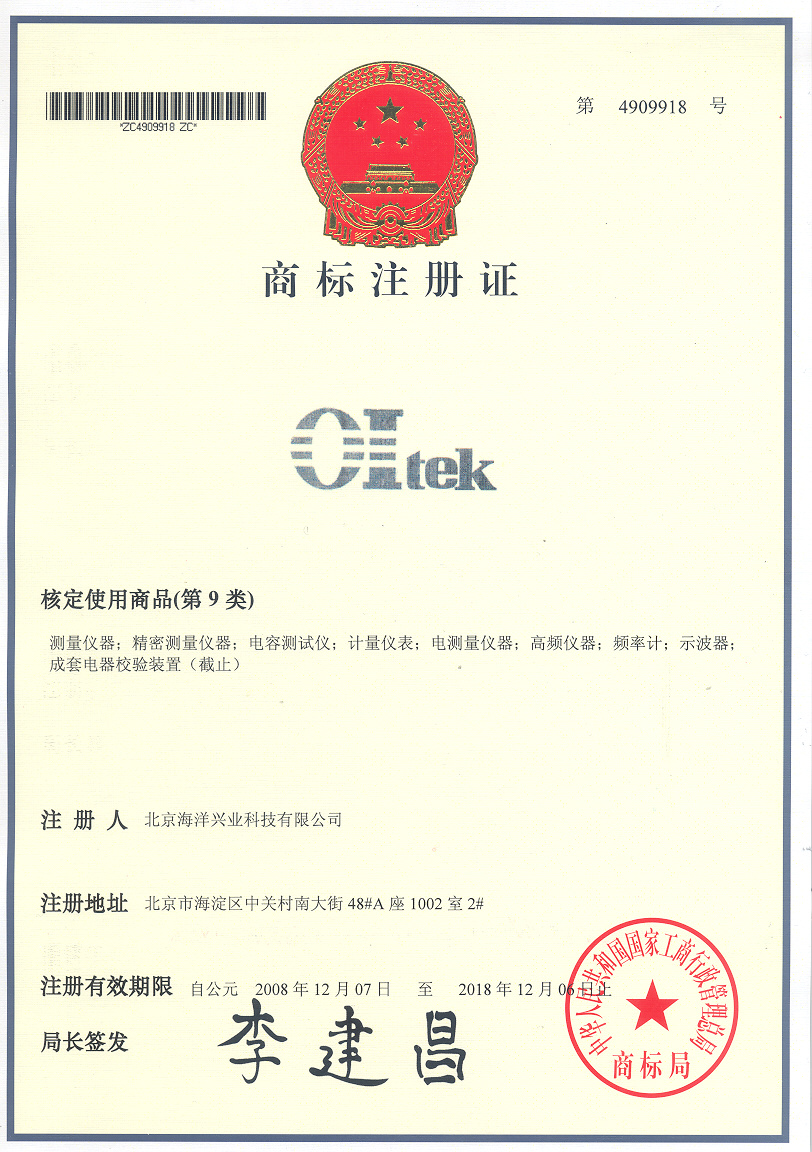 ● 国家工商行政管理总局商标局颁发OI、OItek商标注册证